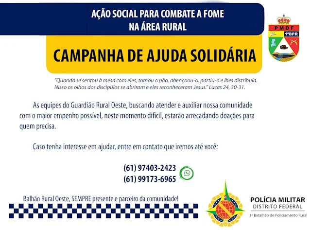 Campanha da PMDF visa arrecadar alimentos para comunidades rurais